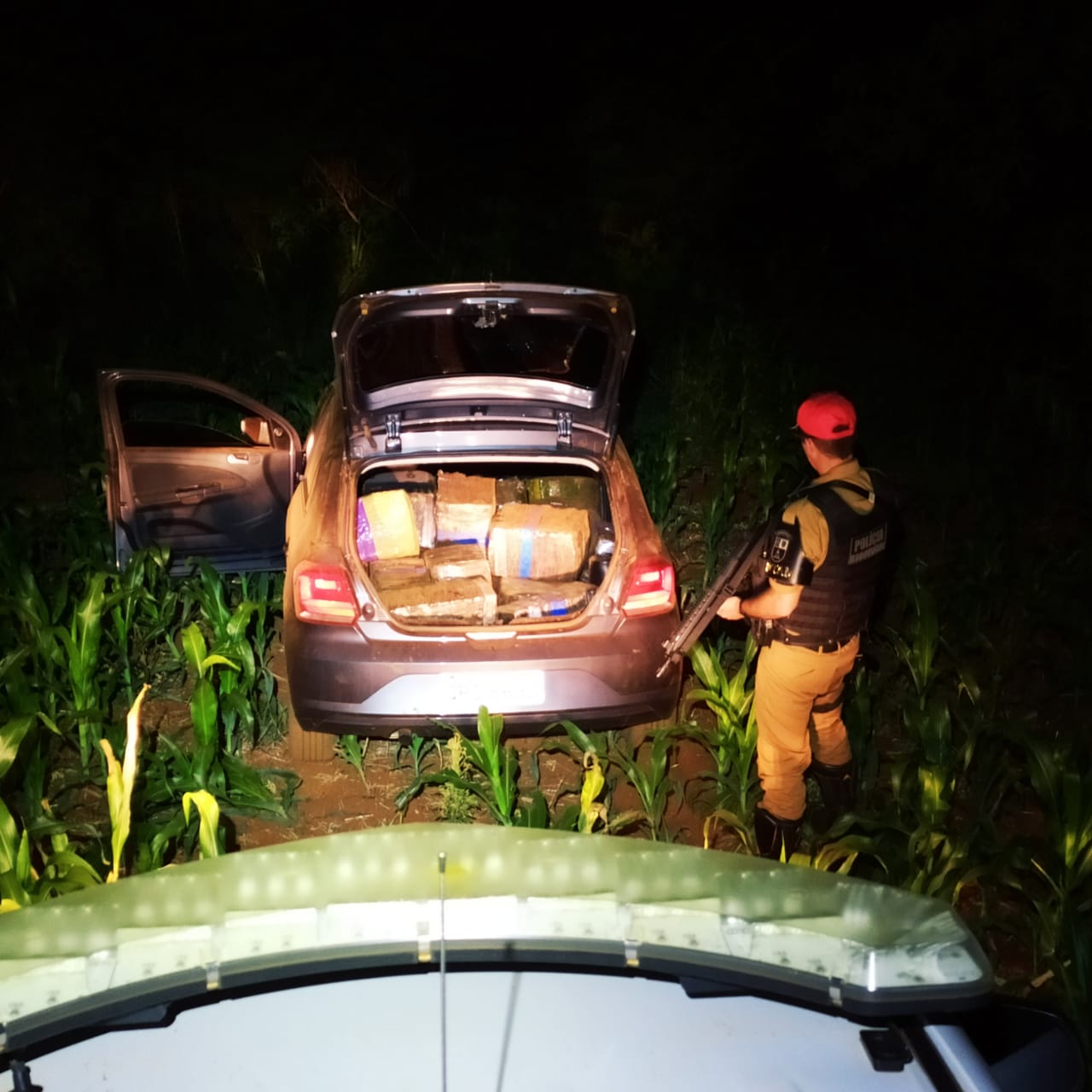 Nesta data (25/11/19) por volta das 05h00min, durante patrulhamento pela PR-182 sentido Palotina/Toledo a equipe de serviço visualizou dois veículos que trafegavam no sentido contrário ao da viatura entrar em uma estrada rural, de imediato a equipe deslocou no intuito de realizar a abordagem, sendo que o condutor ao perceber a presença policial, abandonou o veículo e entrou em uma plantação de milho fugindo para uma mata existente no local. Foi realizado buscas nas imediações não sendo possível localizar o mesmo.