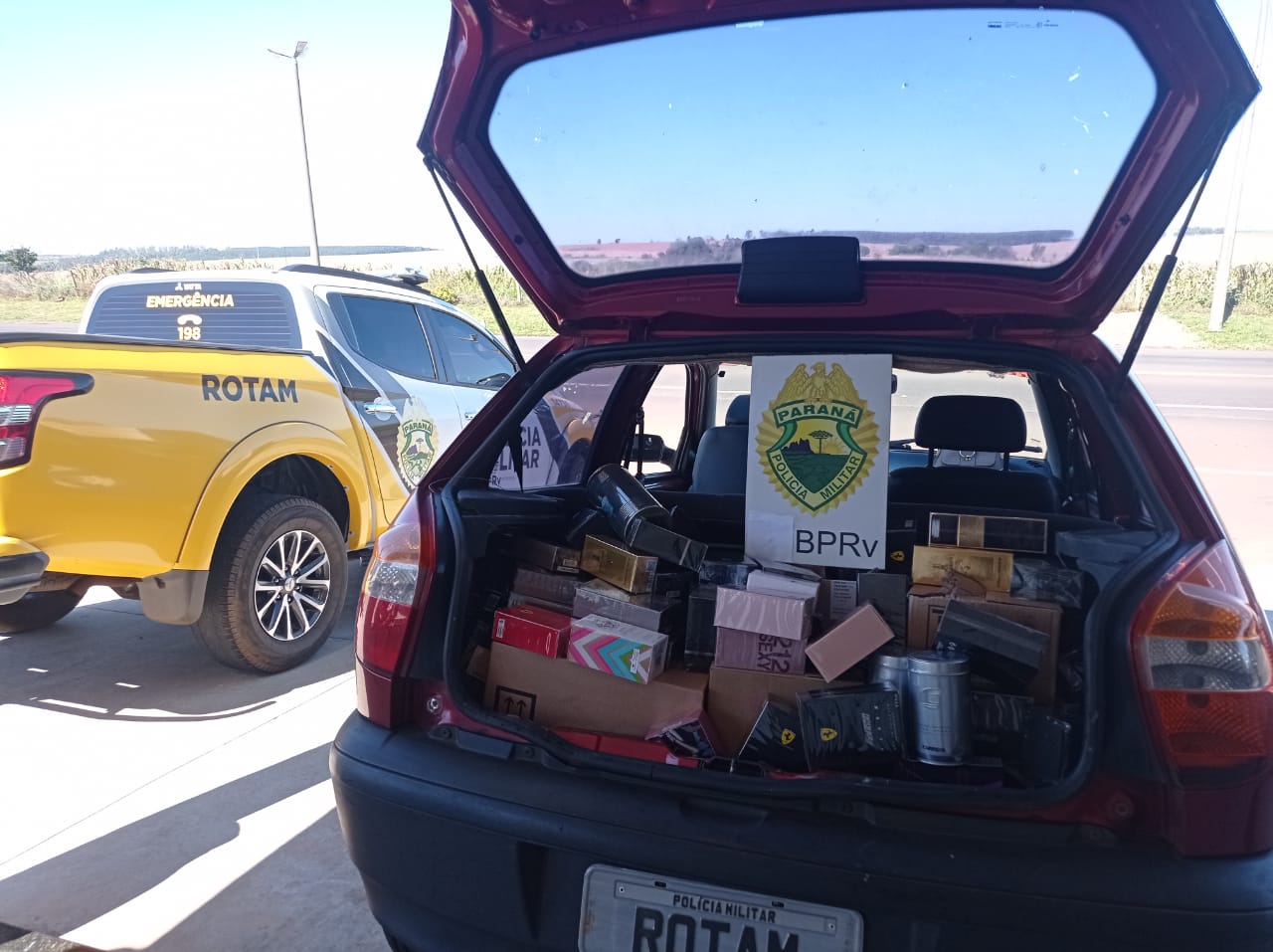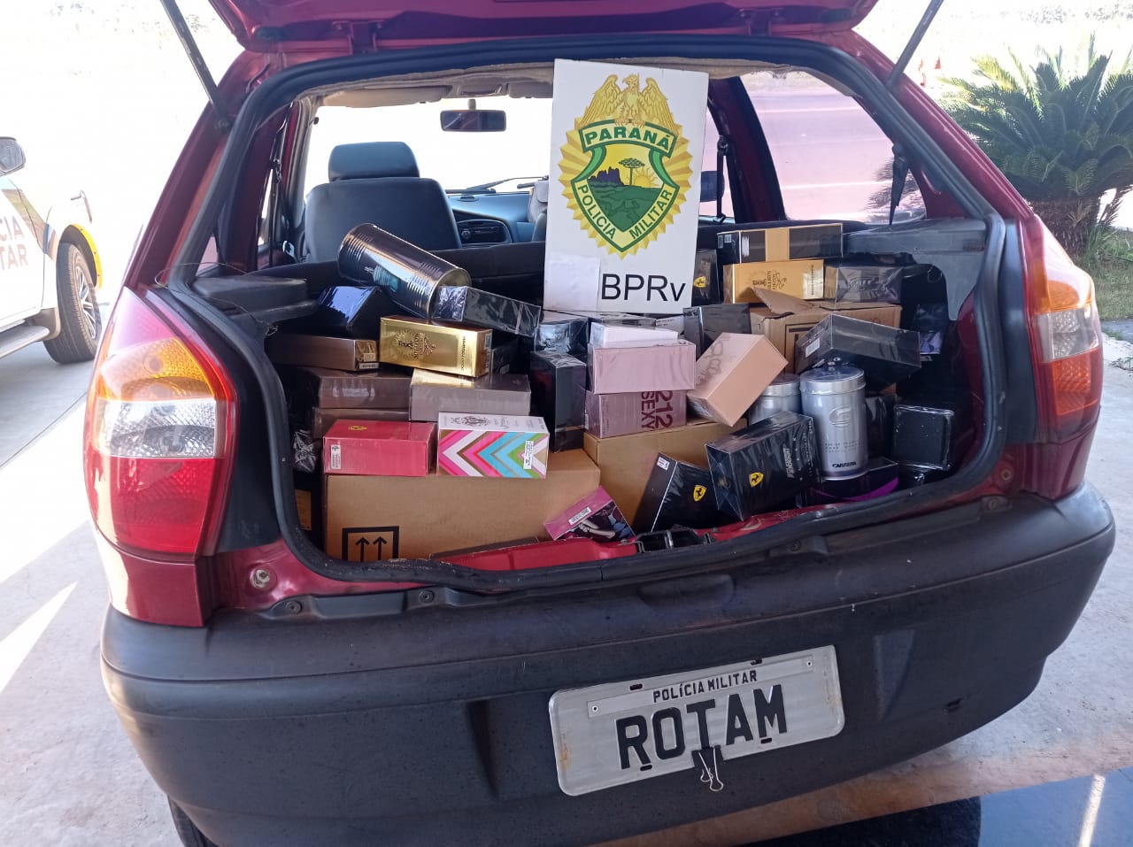 O condutor foi qualificado, a mercadoria e o veículo foram encaminhados a Delegacia da Receita Federal em Guaíra.