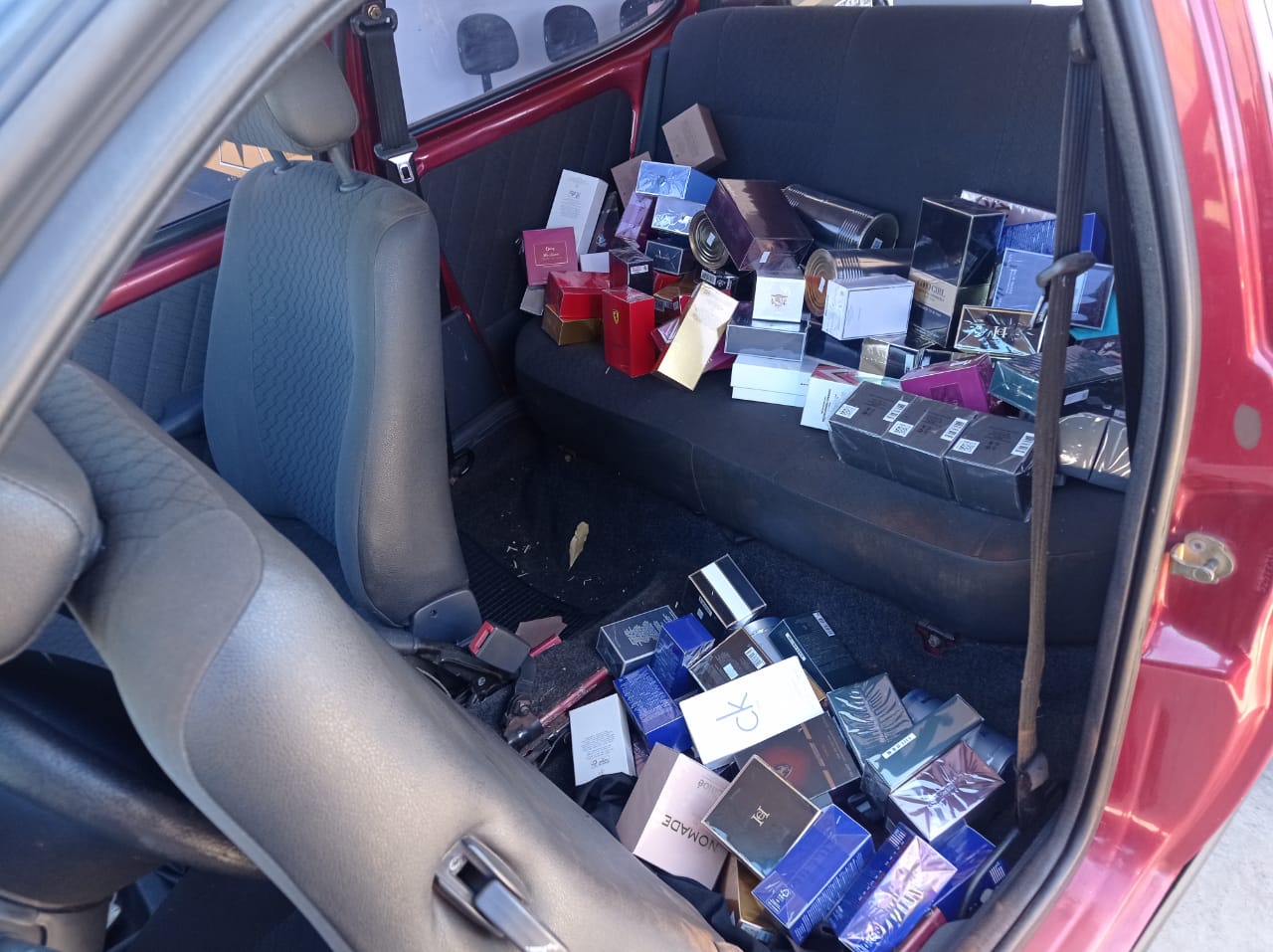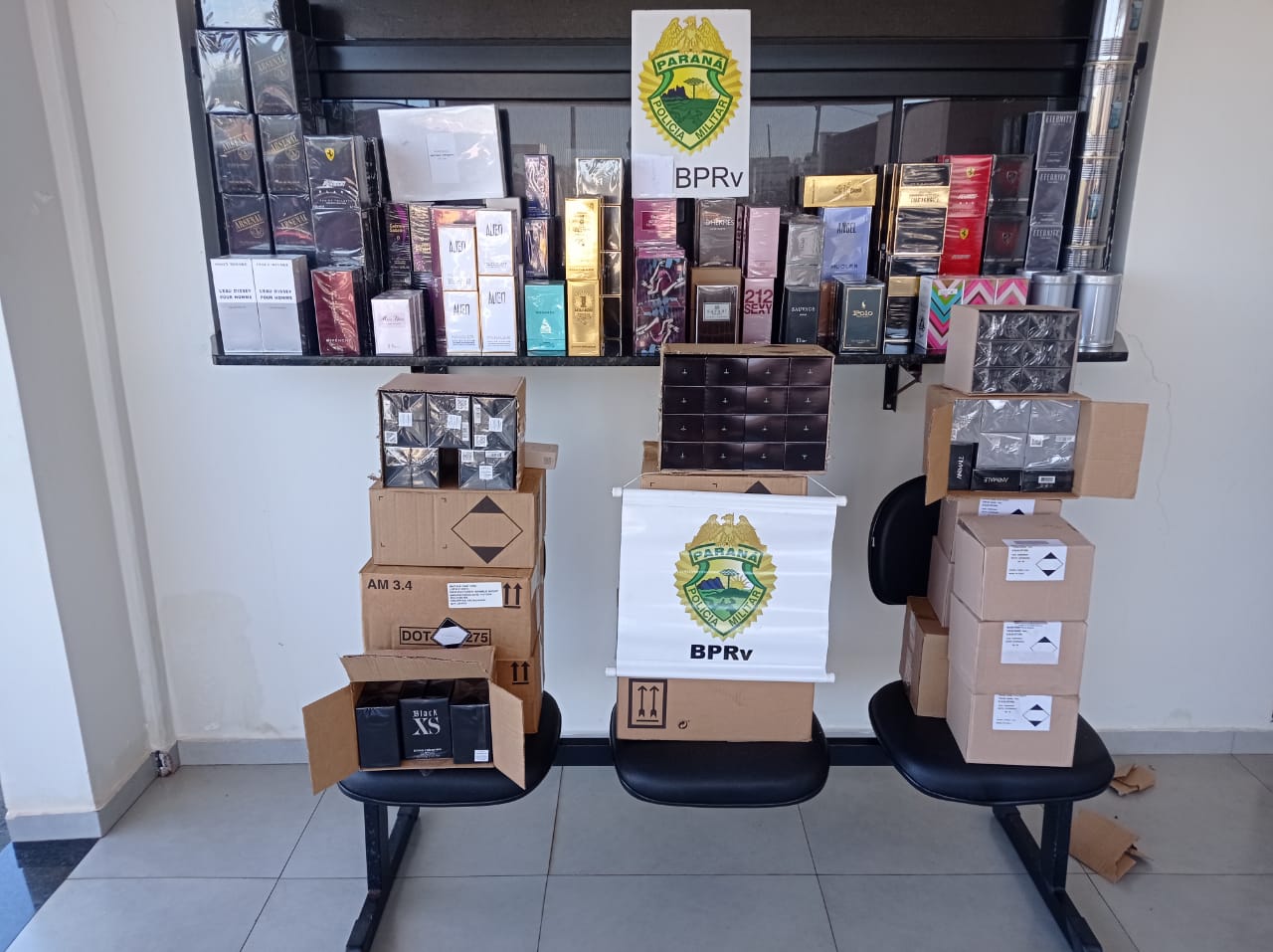 Durante operação na PRC 272, em data de hoje, a equipe Rotam abordou um Fiat/Palio, placas de Moreira Salles, sendo realizada revista no interior e porta malas do veículo, onde foram encontradas diversas caixas de perfumes, que após contagem totalizaram 377 frascos de marcas diversas.