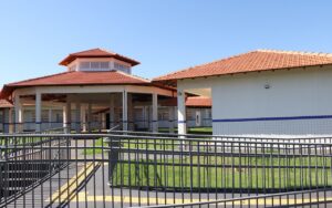 A estrutura conta com seis salas de aula, biblioteca, sala dos professores, salas administrativas, cozinha, banheiros, quadra de esportes, estacionamento, parquinho, entre outras dependências, proporcionando um ambiente adequado para o ensino e o desenvolvimento dos alunos.