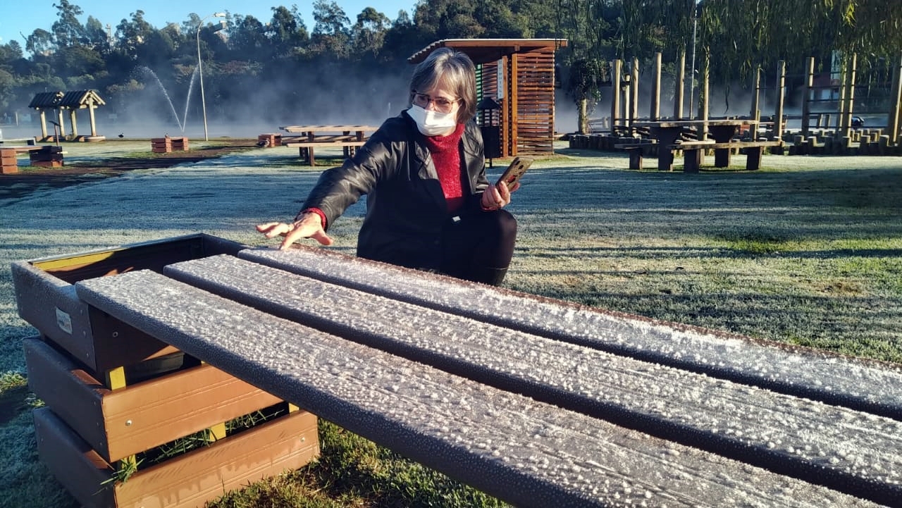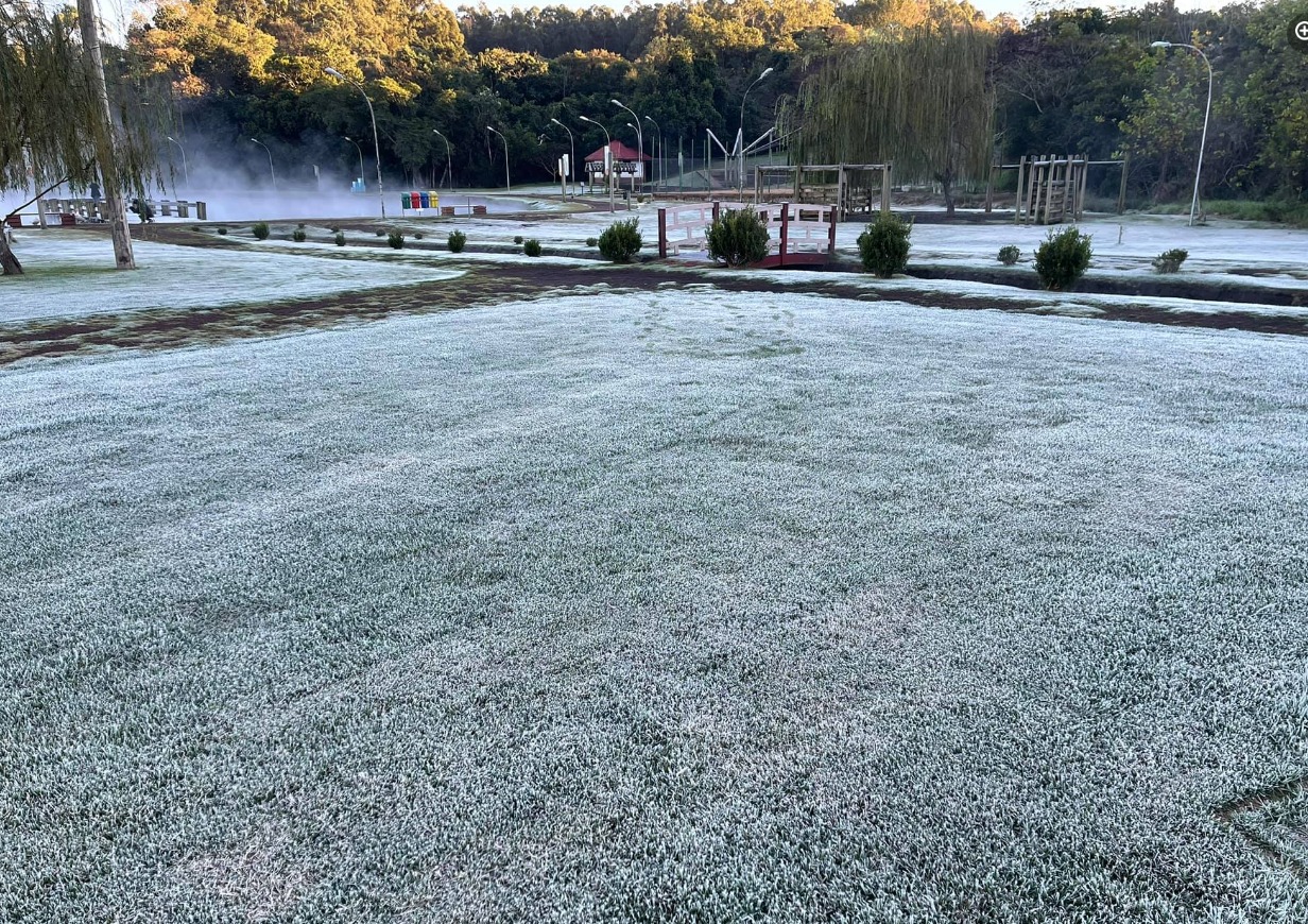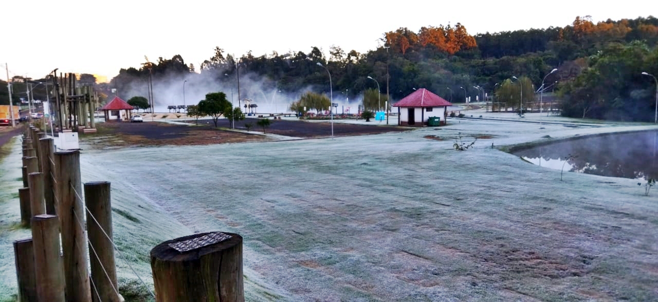 Flagras da geada no Lago Municipal de Marechal Rondon