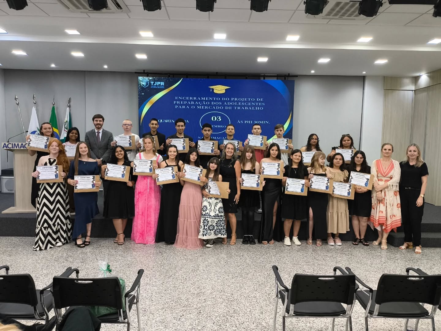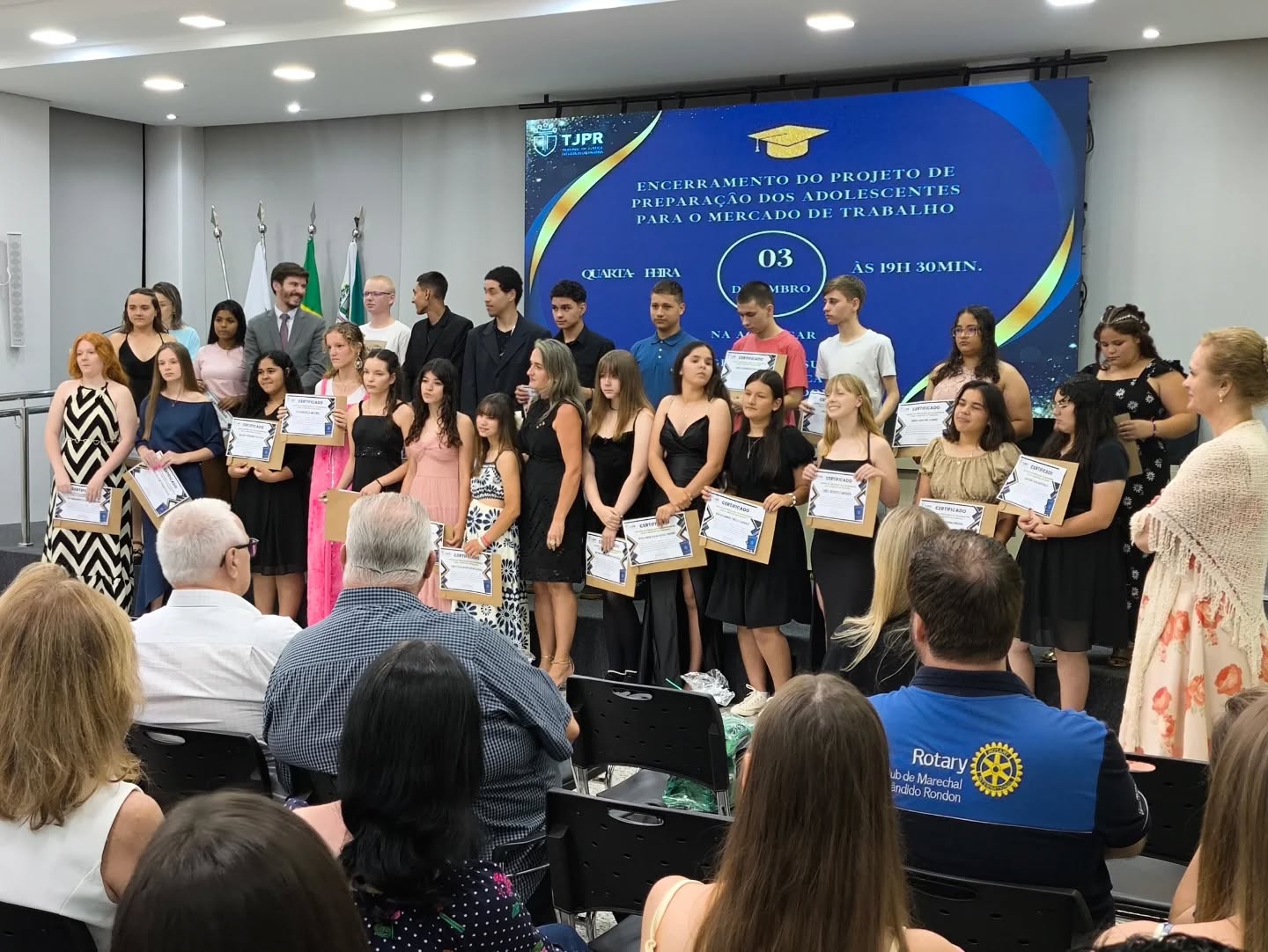 Aconteceu na noite desta quarta-feira (03), no auditório da Associação Comercial e Empresarial de Marechal Cândido Rondon (Acimacar), a formatura da turma do segundo semestre do projeto “Preparação dos Adolescentes para o Mercado de Trabalho”.