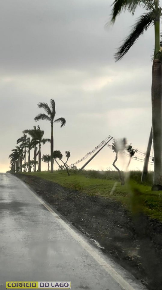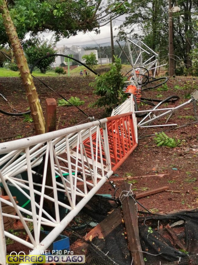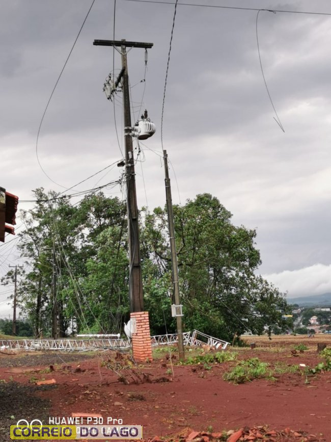 Logo depois das 14h, uma forte rajada de vento pôs ao chão duas torres de transmissão em Santa Helena na tarde deste sábado (23).