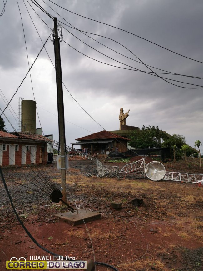 Fortes ventos derrubam torres atrás do ”Cristo” em Santa Helena