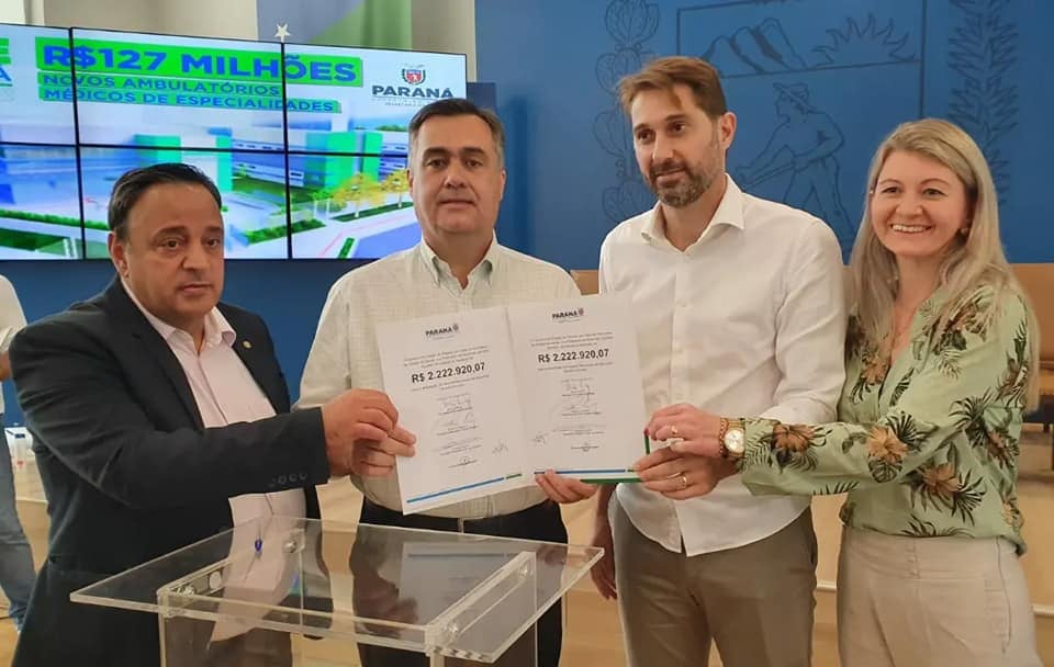 O prefeito Marcio Rauber cumpriu agenda na capital do estado nesta semana. Esteve no Palácio Iguaçu, juntamente com a secretária de Saúde rondonense, Marciane Specht. Durante encontro com o secretário de Estado da Saúde, Beto Preto, e com o deputado estadual Hussein Bakri, foi assinado documento que garante a liberação de R$ 2.222.920,07, para obras de reforma e ampliação do Hospital Municipal Dr. Cruzatti.
