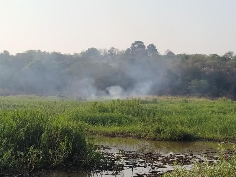 O fogo iniciou-se por volta das 16h00, consumindo a vegetação em uma área alagada do Lago de Itapu, que no momento está baixo, formando uma área de banhado.
