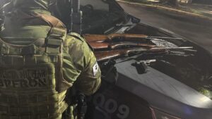 Nesta quarta-feira (18/06), a Polícia Militar do Paraná, por meio do Batalhão de Fronteira (BPFRON), no âmbito da Operação Protetor de Divisas e Fronteiras, durante patrulhamento pela cidade de Pato Bragado, a equipe foi acionada por prestadores de serviço de uma empresa de segurança, a qual informou de que um indivíduo havia agredido um de seus seguranças e inclusive teve seu braço quebrado. O suspeito relatou que iria até sua residência buscar uma arma de fogo, de imediato as equipes iniciaram buscas pela cidade, logrando êxito em localizar o suspeito em frente a sua residência, o homem desobedeceu a ordem de abordagem e correu para dentro da residência. No interior da residência foram localizadas uma pistola e três espingardas. Diante do fato o homem de 30 anos de idade foi preso e encaminhado à Delegacia de Polícia Civil de Marechal Cândido Rondon para os procedimentos cabíveis.