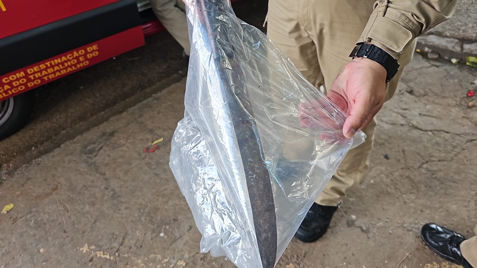 Um facão foi encontrado em posse da vítima e apreendido pelas autoridades. No entanto, ainda não está confirmado se se trata da mesma arma utilizada no crime. Equipes da Polícia Militar e da Guarda Municipal acompanharam a ocorrência.