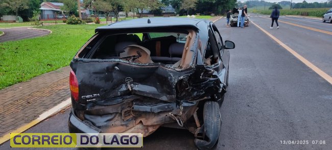 A colisão traseira ocorreu na rodovia PR-317 e envolveu um VW Saveiro, com placas de Santa Helena, e um GM Celta, de Matelândia. De acordo com informações colhidas no local, o Saveiro seguia no sentido São José das Palmeiras a Santa Helena quando colidiu na traseira do Celta.