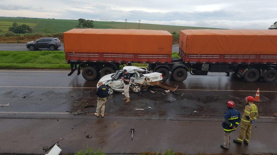 O condutor do Classic se deslocava na BR-163 sentido Cascavel, quando perdeu controle da direção na curva. O carro atravessou canteiro central, rodou e colidiu lateralmente contra a carreta, que seguia no sentido Toledo.