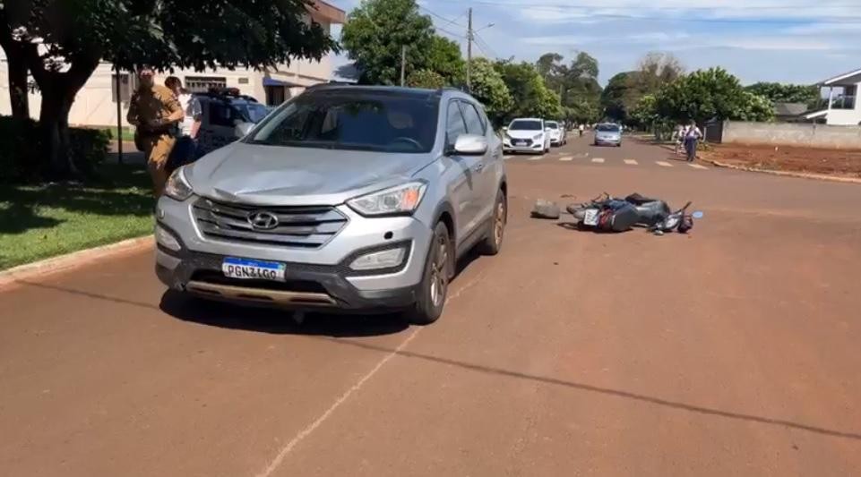 A esquina da rua Boa Vista com a Três de Maio em Nova Santa Rosa registrou um acidente no final da manhã desta sexta-feira.