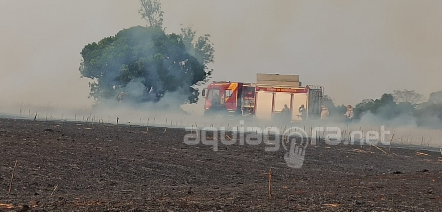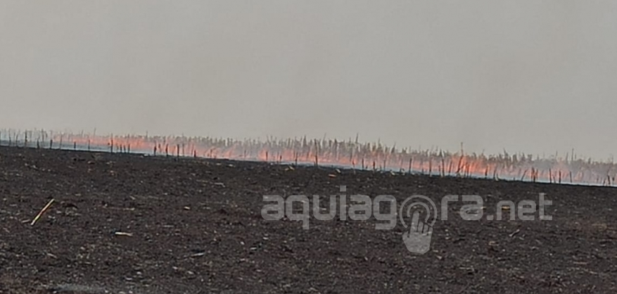 Não há informações sobre as causas do incêndio, mas teve início em uma lavoura com plantação de milho já colhido.