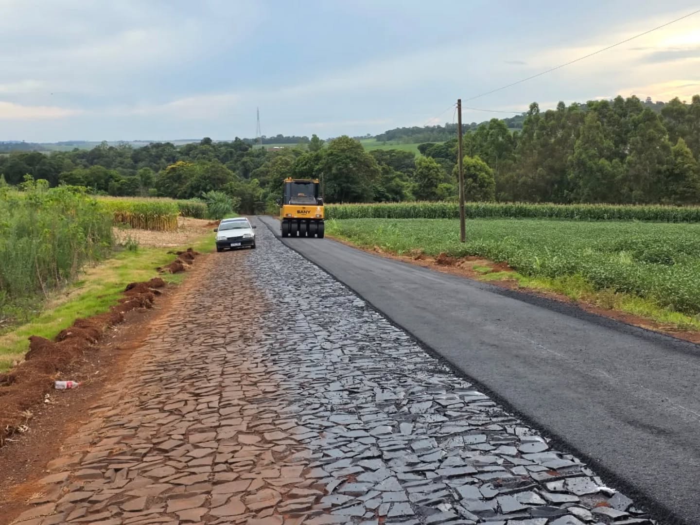 Iniciada a pavimentação asfáltica sobre pedras irregulares na Linha Concórdia
