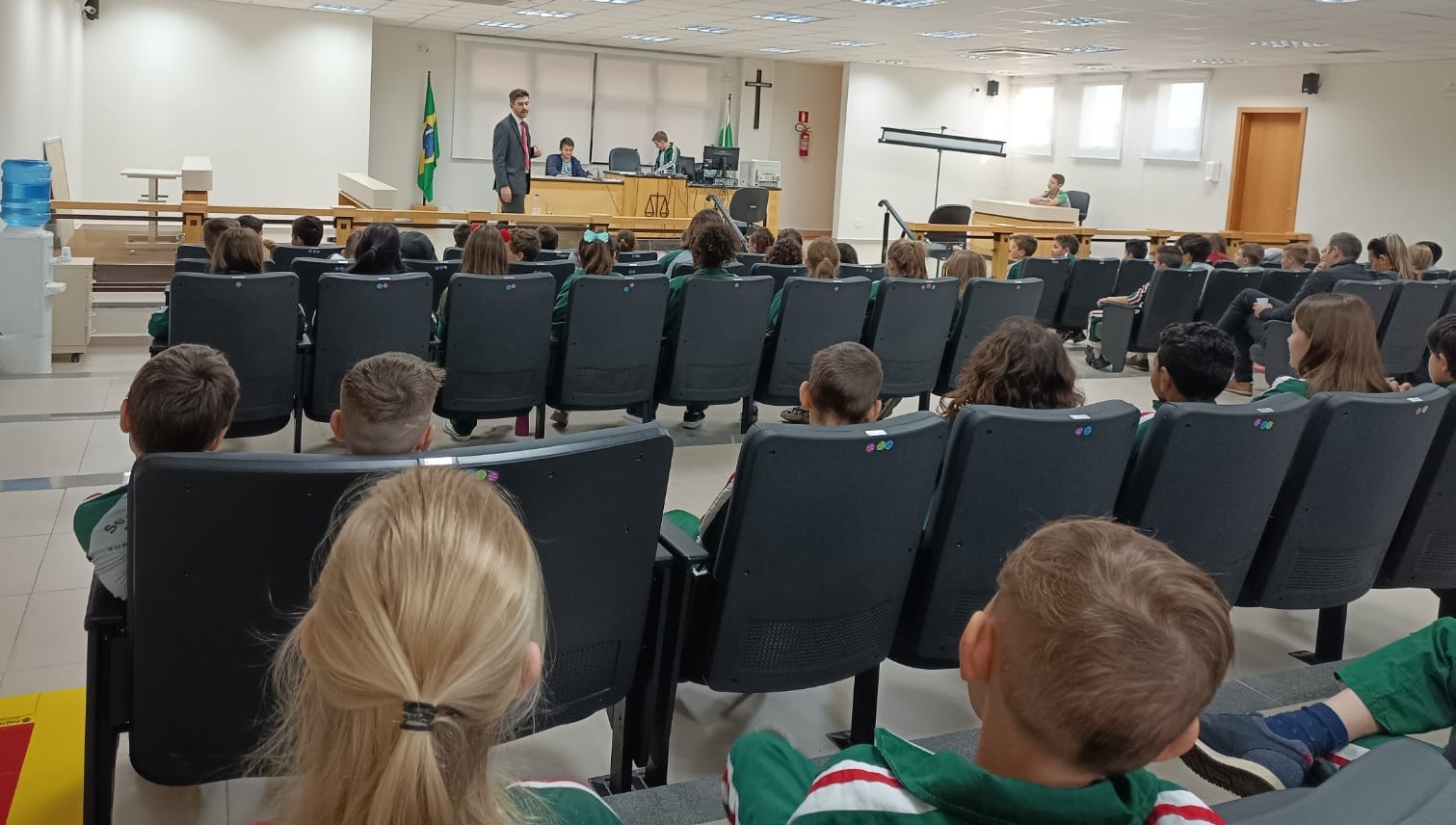 Teve início nesta sexta-feira (04), a nova etapa do projeto “Justiça e Cidadania Também se Aprendem na Escola”. Alunos de turmas do 5º ano de escolas da rede municipal de Marechal Cândido Rondon participaram de uma visita ao fórum da comarca.
