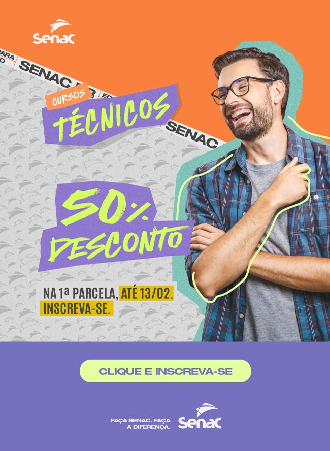 Para quem efetivar sua matrícula até o próximo dia 13 de fevereiro, haverá desconto de 50% na 1º parcela.