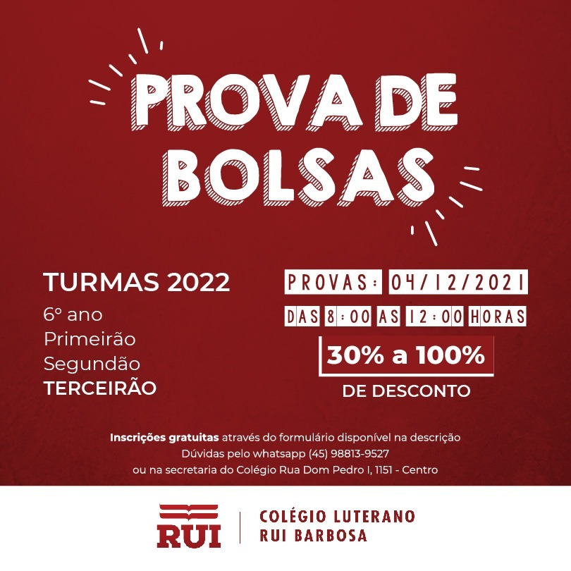 Termina nesta sexta-feira, o período de inscrições para a Prova de Bolsas 2022 do Colégio Luterano Rui Barbosa, de Marechal Cândido Rondon.