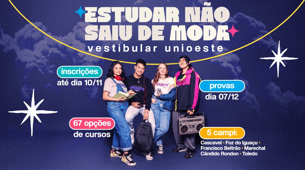 A Universidade Estadual do Oeste do Paraná encerra hoje o prazo para inscrições no vestibular 2025.