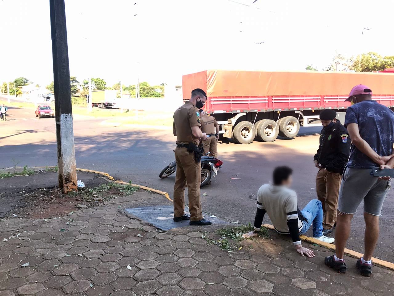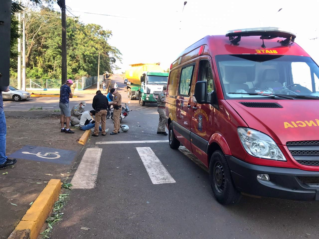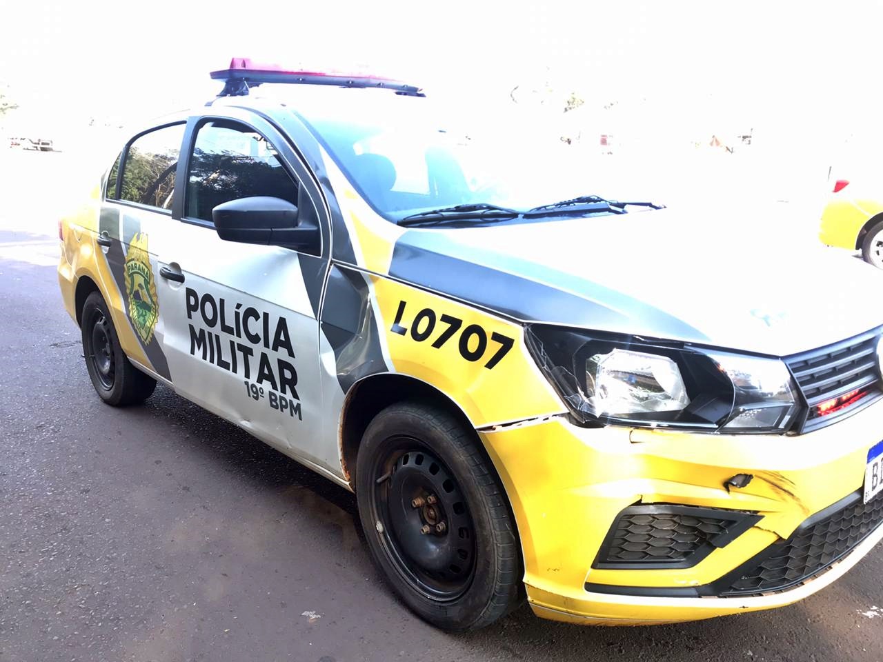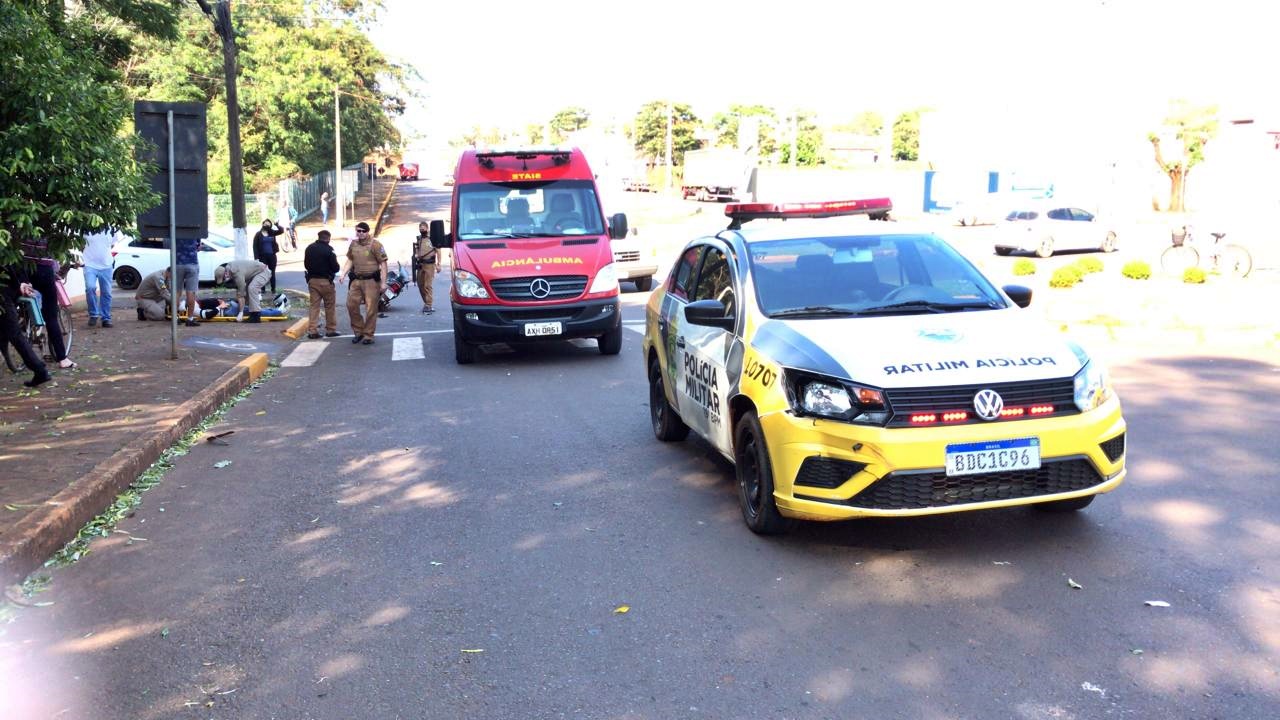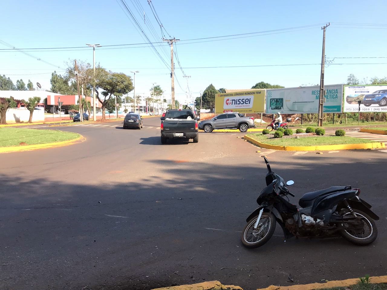 Jovem bate moto contra viatura da PM na rotatória da Agricola Horizonte