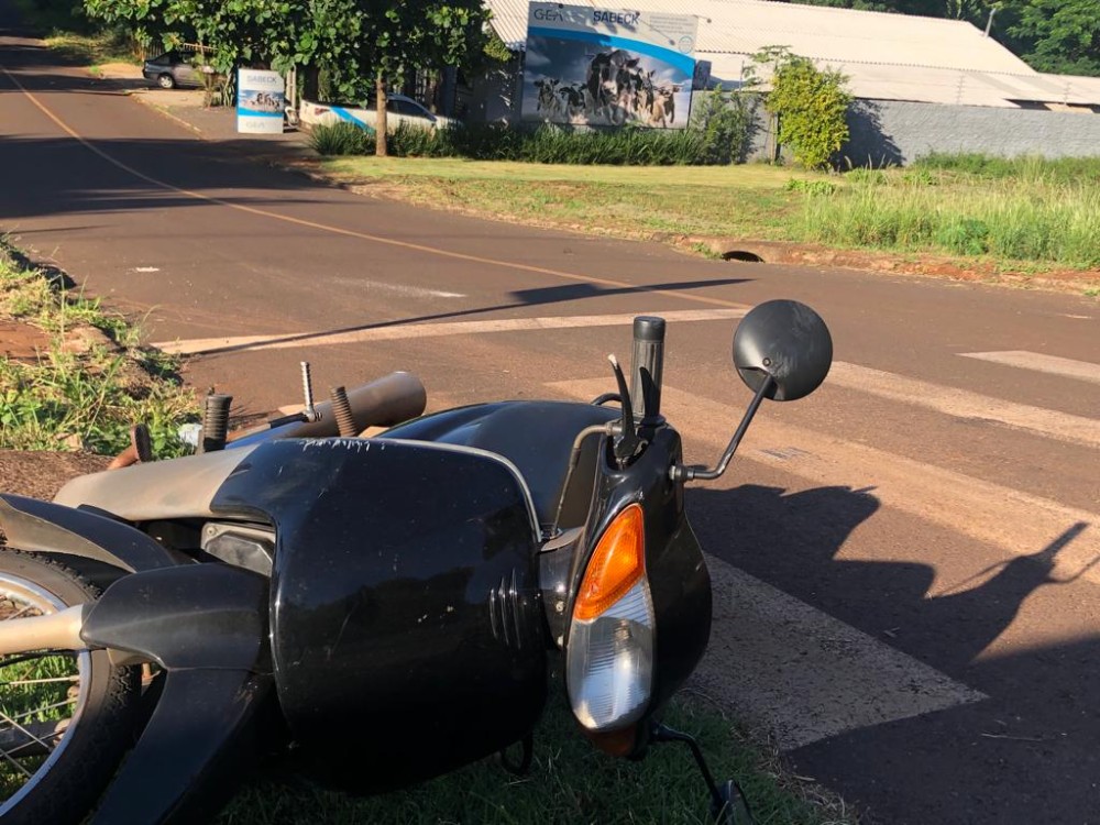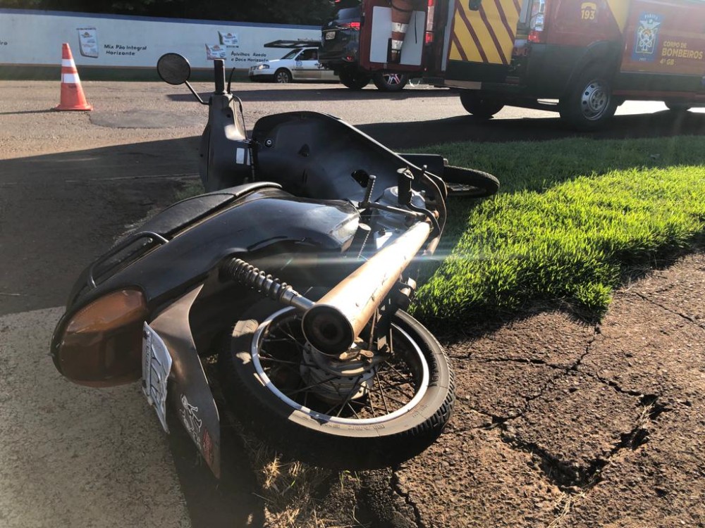 A colisão envolveu um automóvel Fiat Uno, que descia a Avenida, e uma motocicleta Honda Biz que tentava cruzar a Rio Grande do Sul.