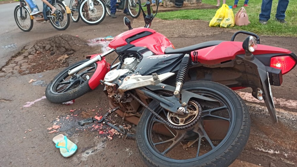 Com o forte impacto, a perna da rondonense foi dilacerada no acidente. O seu marido, carona da moto, não se feriu.