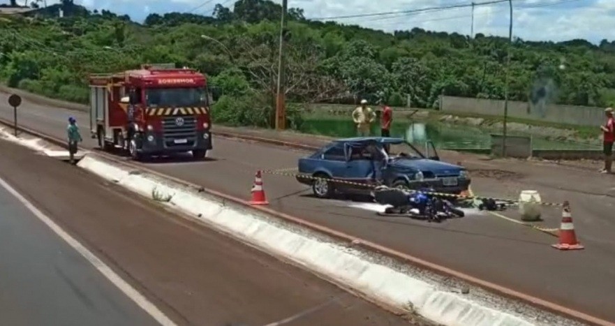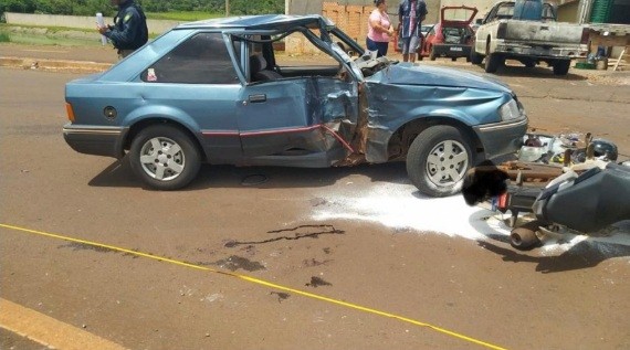 A colisão envolveu um veículo Escort e uma motocicleta Honda/CB250, ambos com placas de Marechal Cândido Rondon.
