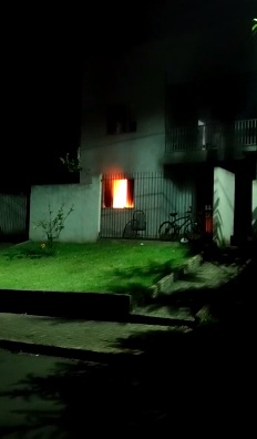 Por volta das 23h45, o Corpo de Bombeiros foi chamado e quando chegou no local, identificou que um dos cômodos da casa (quarto) estava em chamas.