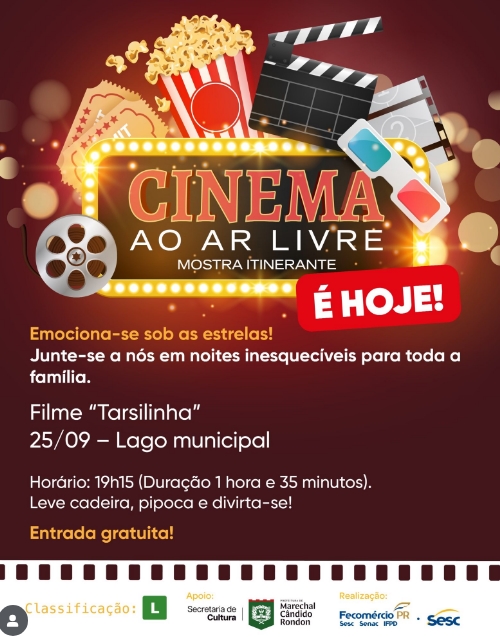 O Sesc, com o apoio da prefeitura de Marechal Cândido Rondon, por meio da Secretaria de Cultura, promove nesta quinta-feira (25) mais uma edição do Cinema ao Ar Livre, com a exibição do filme Tarsilinha.