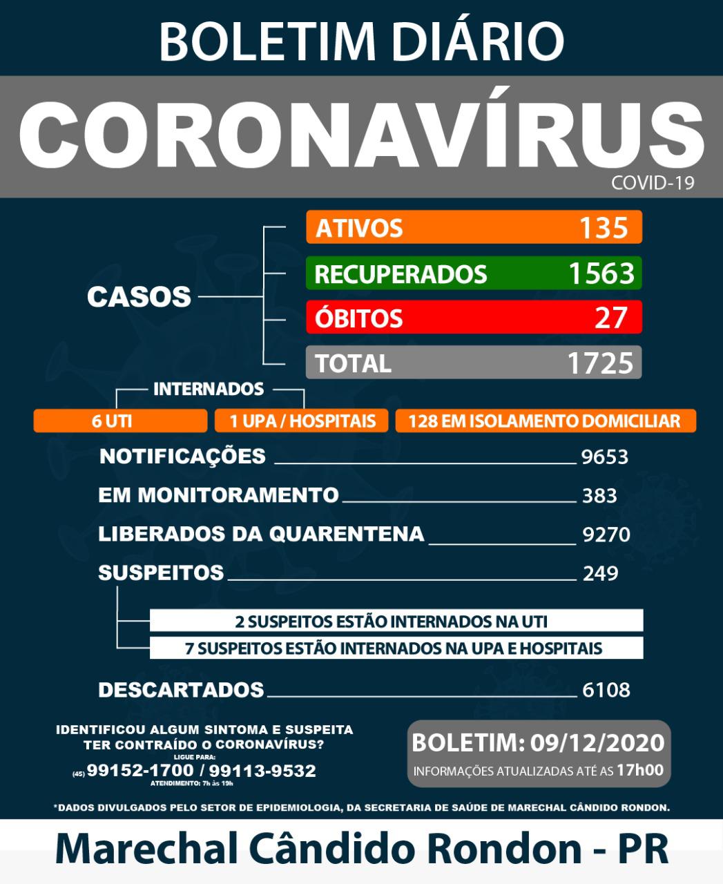 O boletim diário coronavírus divulgado às 17h00 desta quarta-feira apontou mais 20 diagnósticos positivos para Marechal Cândido Rondon.