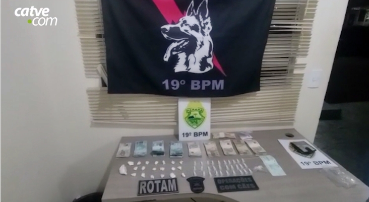 Durante busca pessoal nada de ilícito foi encontrado, mas ao vasculharem a residência encontraram uma porção de cocaína em forma bruta, pesando aproximadamente 3 gramas. Uma mulher de 21 anos relatou que estava ali para comprar a droga.