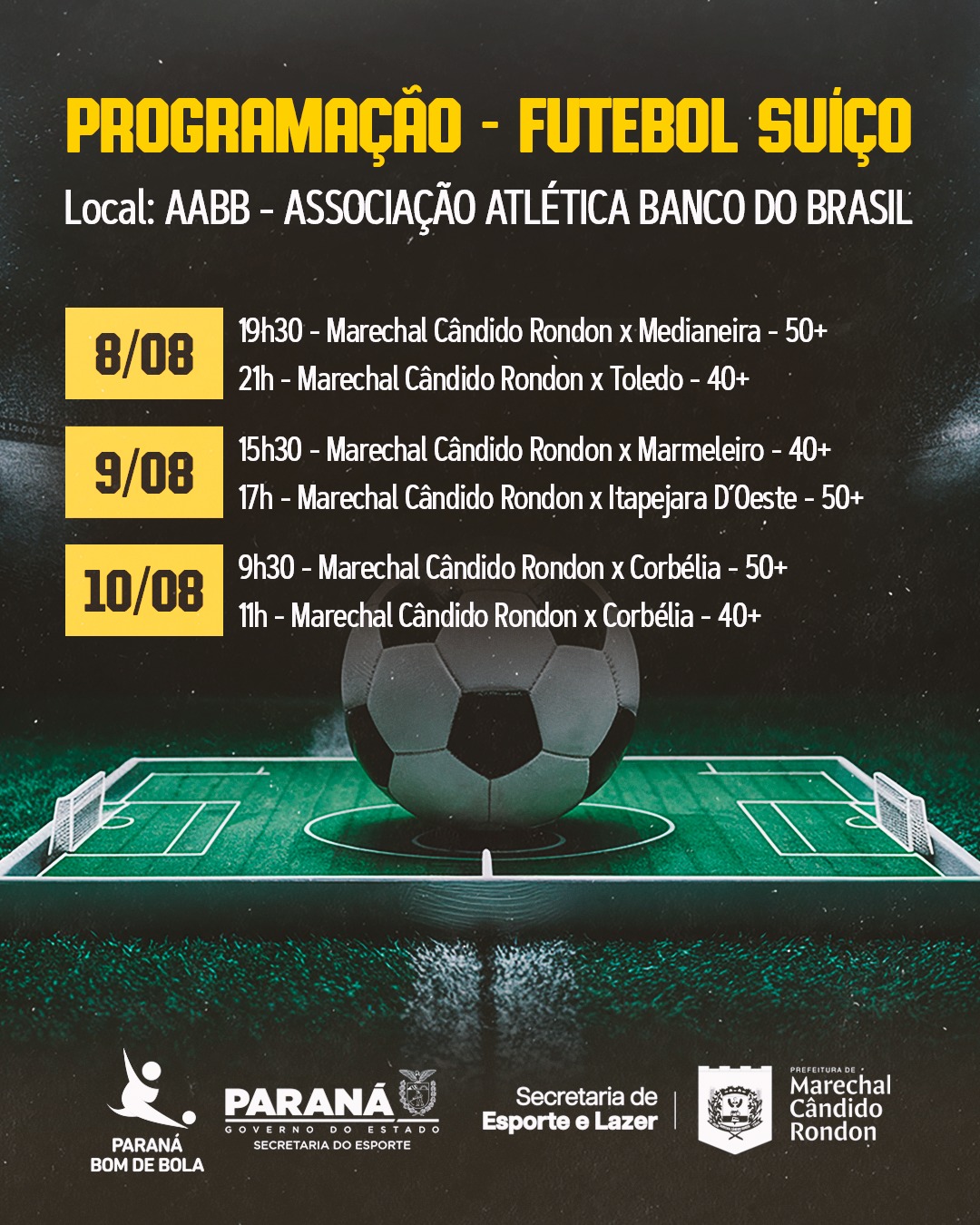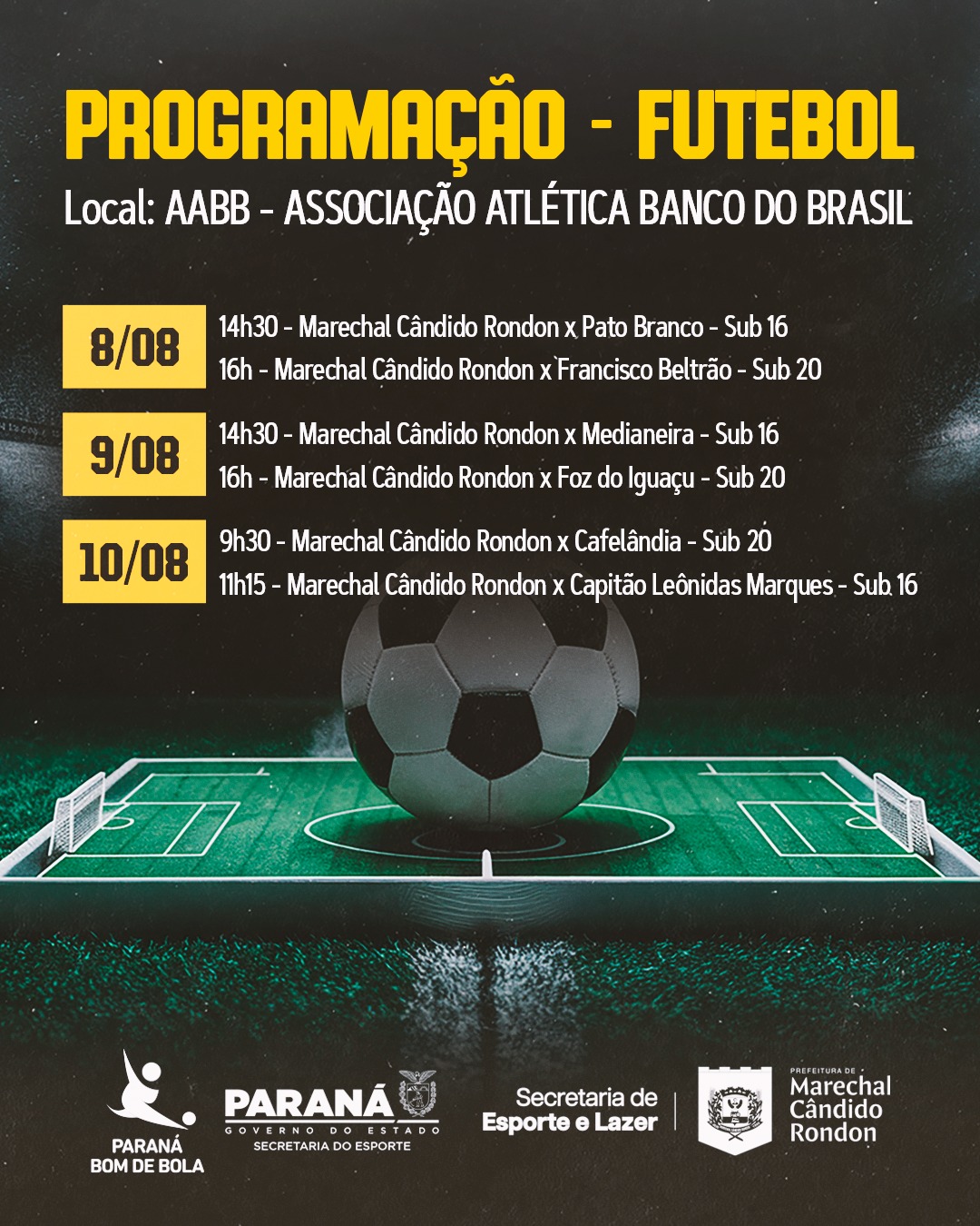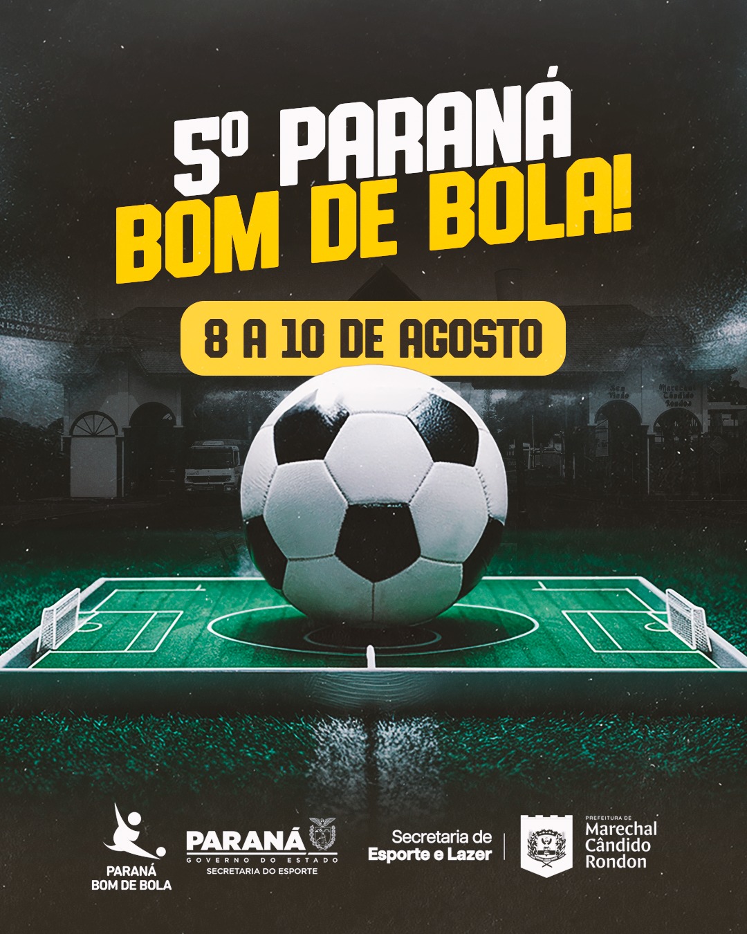 Entre os dias 8 e 10 de agosto, Marechal Cândido Rondon será sede da fase macrorregional da 5ª edição do Paraná Bom de Bola, competição promovida pela Secretaria de Estado do Esporte do Paraná (SEES), com apoio da Secretaria Municipal de Esporte e Lazer.