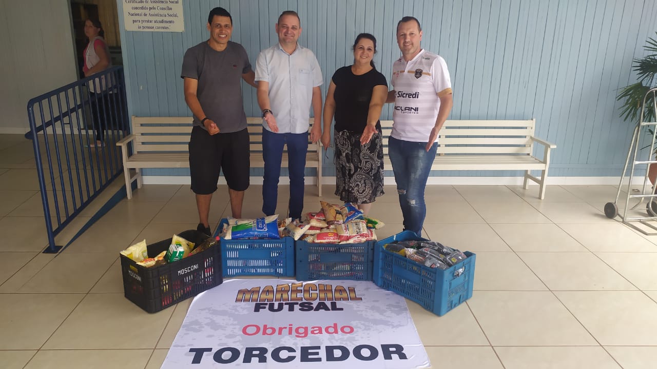 Foram arrecadados quase meia tonelada de alimento e nesta segunda-feira (02) o técnico da equipe Roberto Nunes juntamente com o presidente Cristiano Bortolon fizeram os repasses.