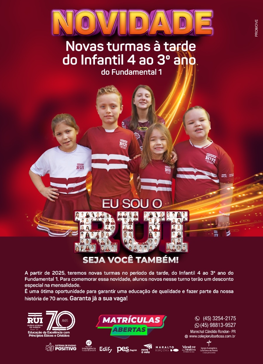 Para mais informações e matrículas pelo fone 3254-2175 ou diretamente no Colégio Luterano Rui Barbosa.