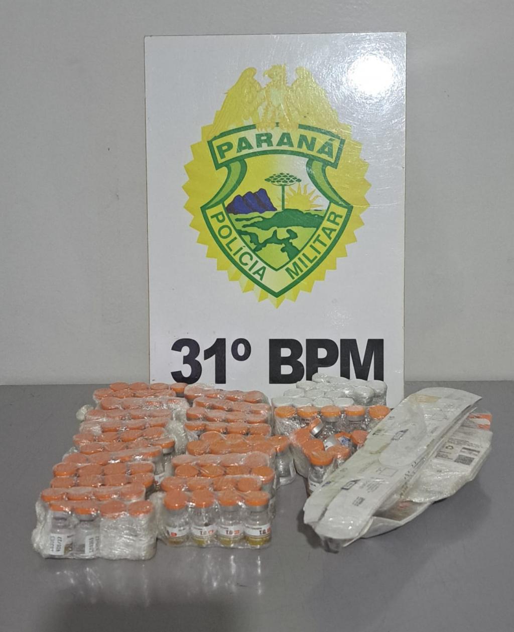 No interior do estojo, foram encontrados diversos frascos de tirzepatida, substância utilizada como medicamento e que possui restrições legais para comercialização e transporte. Após a contagem, foram apreendidas 94 ampolas da marca TG, 5 ampolas da marca Lipoless e 15 ampolas da marca Tirzec.
