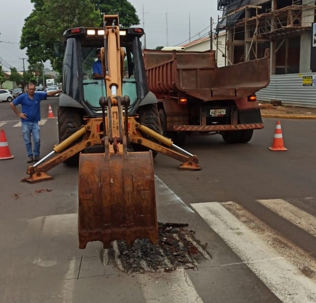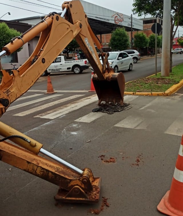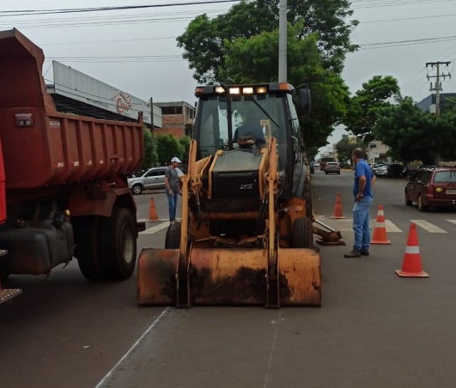 A Secretaria de Mobilidade de Marechal Cândido Rondon iniciou, na manhã desta segunda-feira (31), o fechamento do cruzamento da Avenida Rio Grande do Sul com a rua 12 de Outubro. As equipes trabalham na quebra do asfalto e no preparo do meio-fio para estender o canteiro central, visando o posterior plantio de grama.
