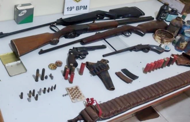 O armamento possuía registro, por esta razão todo material foi encaminhado juntamente com o acusado para a delegacia de Toledo.