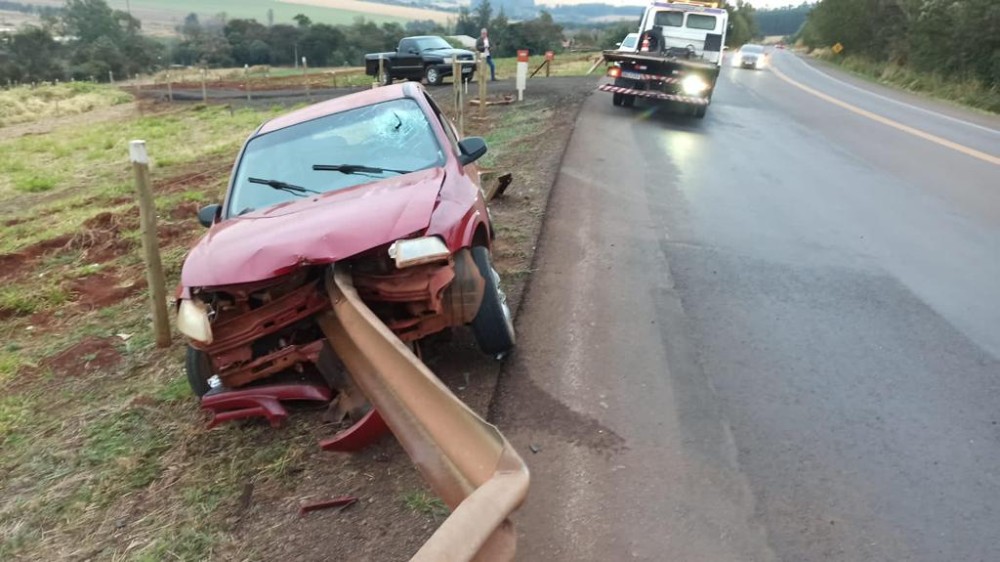 A colisão envolveu um automóvel Celta, com placas de Toledo, ocupado por uma família que seria moradora de Guaíra.