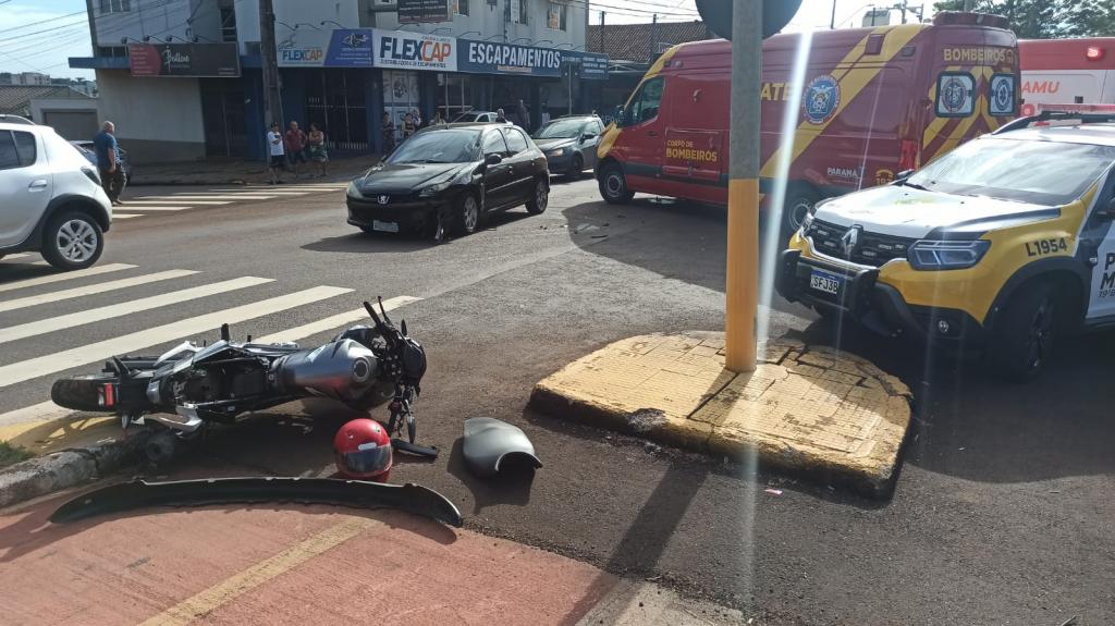 Na manhã de quinta-feira (27), um acidente de natureza grave foi registrado no cruzamento da Rua São João com a Avenida Parigot de Souza, na área central de Toledo. A colisão envolveu uma motocicleta Honda Twister de 250 cilindradas, conduzida por um homem de 54 anos, e um veículo Peugeot modelo 206, conduzido por uma mulher.