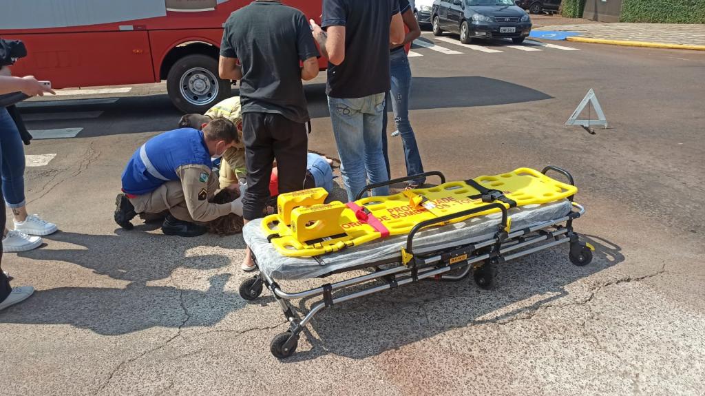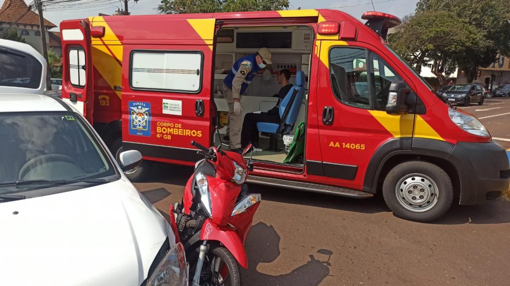 Motociclista e passageira ficam feridos em acidente entre carro e moto no centro de Toledo