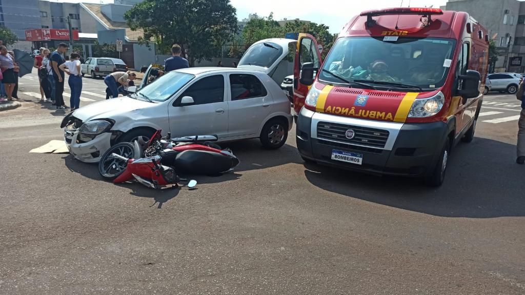 Um acidente aconteceu no cruzamento da Rua Sarandi com Rua Nossa Senhora do Rocio na área central de Toledo e envolveu um veículo Chevrolet Celta com placas Mercosul e uma moto Biz de 125 cilindradas com placa também do Mercosul conduzida por um jovem de 23 anos que tinha na garupa uma adolescente de 17 anos.