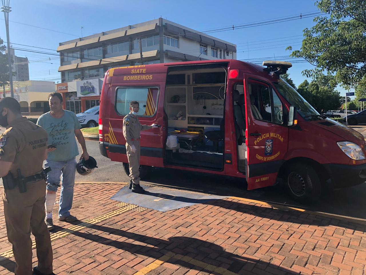 Motociclista fica ferido em acidente no centro de Marechal Rondon