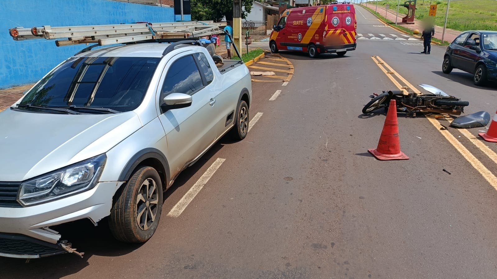 Motociclista sofre duas fraturas após colisão com picape em Toledo