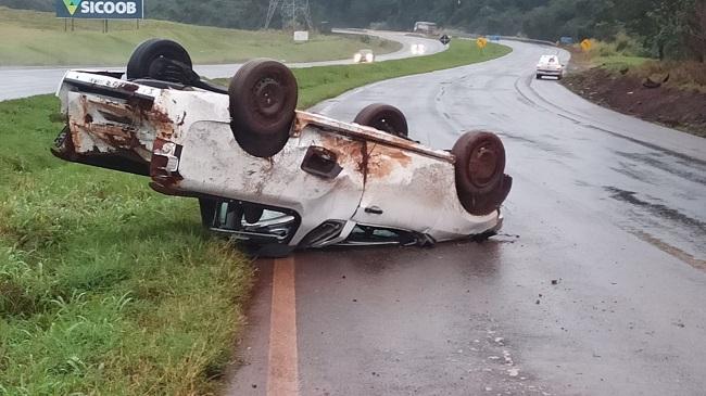 O utilitário trafegava no sentido a Toledo e em uma curva antes da ponte, a condutora perdeu o controle de direção da Montana e atingiu o barranco do lado direito e capotou parando na pista do lado esquerdo próximo ao canteiro central ficando com as rodas para cima.