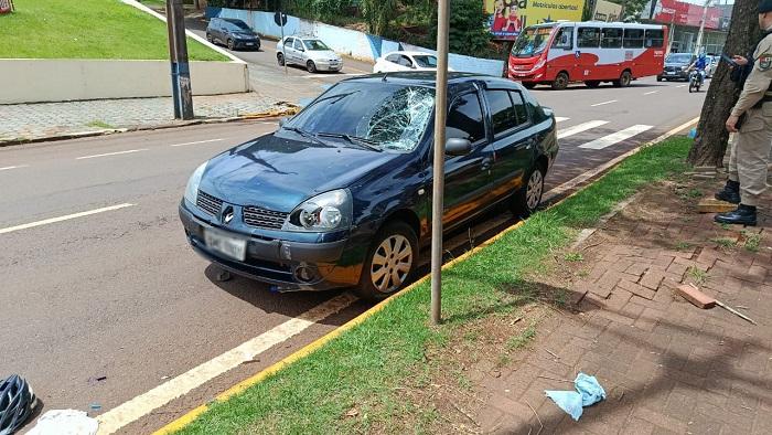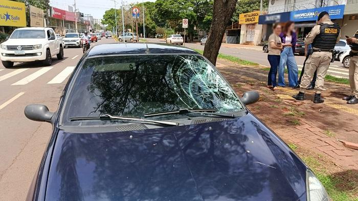 O impacto da batida quebrou o para-brisa do automóvel. A Polícia Militar esteve no local para sinalizar o trânsito e registrar a ocorrência, que será investigada para apurar as circunstâncias do acidente.