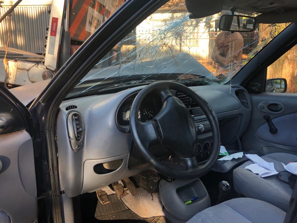Com o impacto, a condutora foi projetada para frente e bateu a cabeça com violência contra o para-brisa.