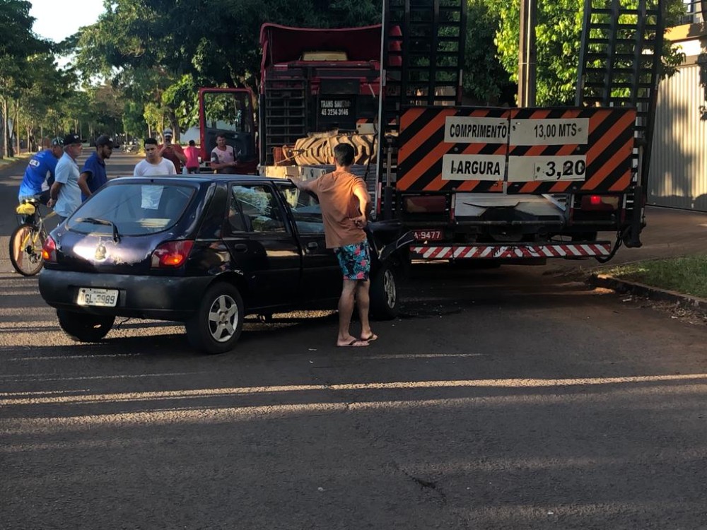 O veículo, com placas de Itaipulândia, ocupado pela condutora, atingiu o prancha, com placas de Marechal Cândido Rondon, que estava estacionado próximo ao cruzamento com a Rua das Samambaias, na Avenida Maripá.