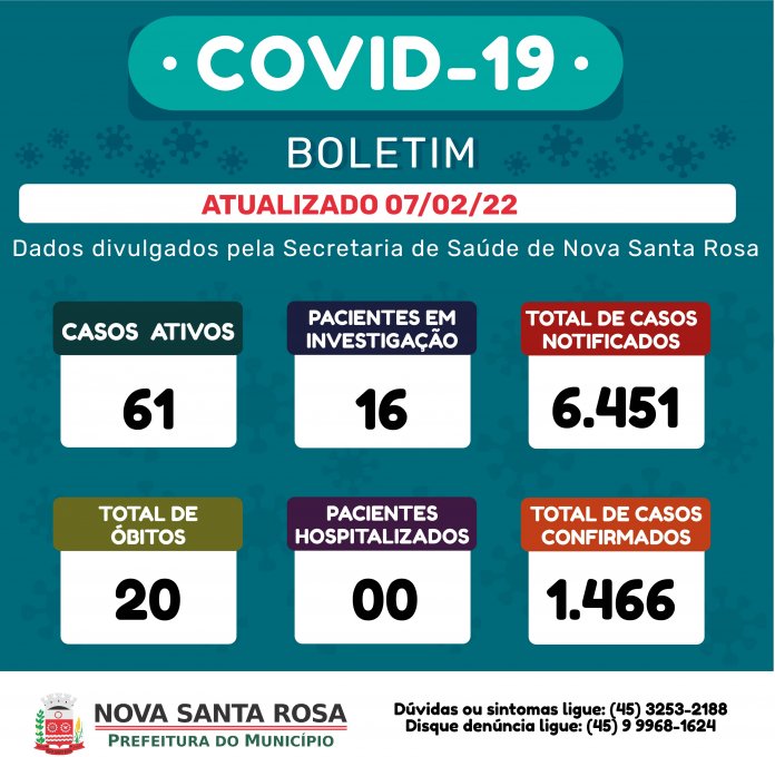 A Secretaria de Saúde de Nova Santa Rosa divulgou ontem mais dois óbitos por Covid-19, registrados neste final de semana.