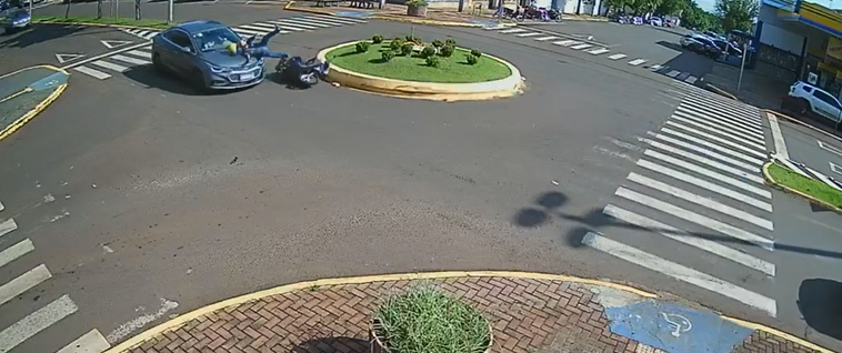 Apesar do impacto e queda do motociclista, ele não resultou com ferimentos.