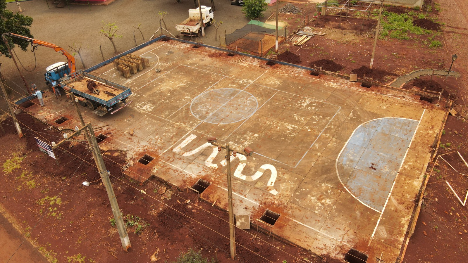 Nesta semana teve início a obra de cobertura e reforma do piso da quadra esportiva da Escola Rural Municipal Almirante Barroso, localizada em Vila Curvado, interior de Marechal Cândido Rondon.