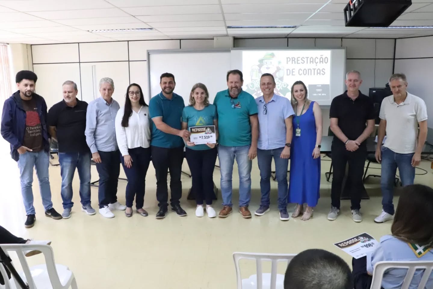 Em encontro realizado na manhã desta sexta-feira (7), no auditório da prefeitura de Marechal Cândido Rondon, foi apresentada a prestação de contas da Oktoberfest 2025 e realizado o repasse dos valores arrecadados para as entidades parceiras do evento. Ao todo, quase R$ 170 mil foram destinados às entidades do município, sendo: R$ 898,00 para o Grupo Escoteiro Rocha Eterna; R$ 3.094,50 para o Grupo de Amparo e Proteção Animal (GAPA); R$ 1.299,00 para o Lions Clube; R$ 1.790,50 para a Associação de Moradores do Jardim Primavera; R$ 2.124,50 para o Grupo Folclórico Raízes; R$ 2.022,00 para o Rotaract; R$ 4.031,00 para o Rotary; R$ 7.519,00 para a Assemar Runners; R$ 91.842,84 para o Núcleo de Gastronomia; e R$ 55.234,32 para a Assemar.