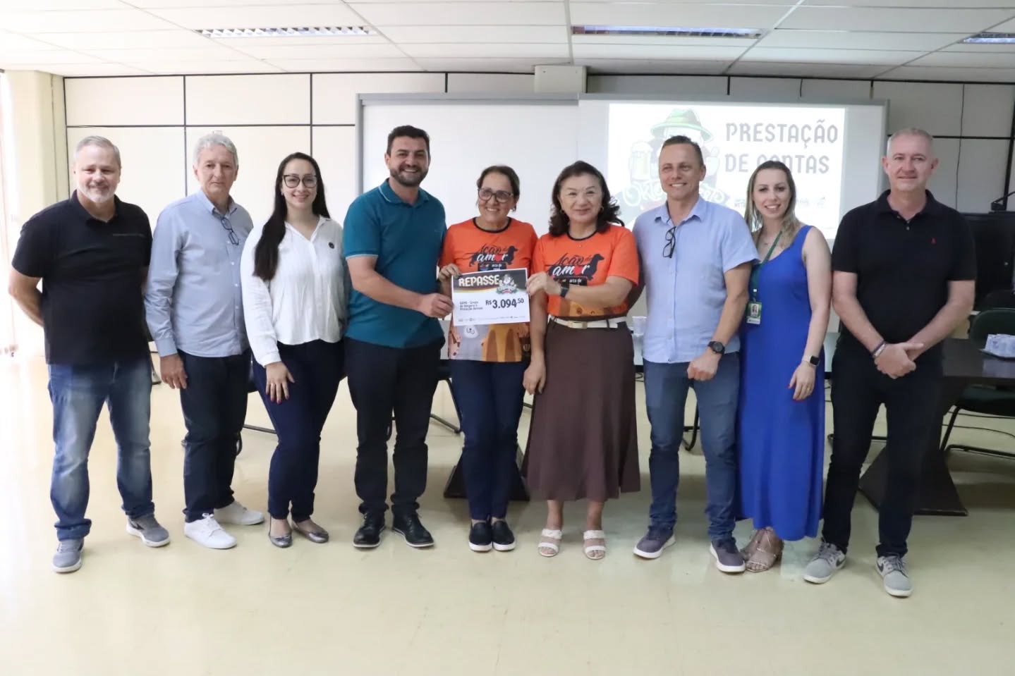 Em encontro realizado na manhã desta sexta-feira (7), no auditório da prefeitura de Marechal Cândido Rondon, foi apresentada a prestação de contas da Oktoberfest 2025 e realizado o repasse dos valores arrecadados para as entidades parceiras do evento. Ao todo, quase R$ 170 mil foram destinados às entidades do município, sendo: R$ 898,00 para o Grupo Escoteiro Rocha Eterna; R$ 3.094,50 para o Grupo de Amparo e Proteção Animal (GAPA); R$ 1.299,00 para o Lions Clube; R$ 1.790,50 para a Associação de Moradores do Jardim Primavera; R$ 2.124,50 para o Grupo Folclórico Raízes; R$ 2.022,00 para o Rotaract; R$ 4.031,00 para o Rotary; R$ 7.519,00 para a Assemar Runners; R$ 91.842,84 para o Núcleo de Gastronomia; e R$ 55.234,32 para a Assemar.